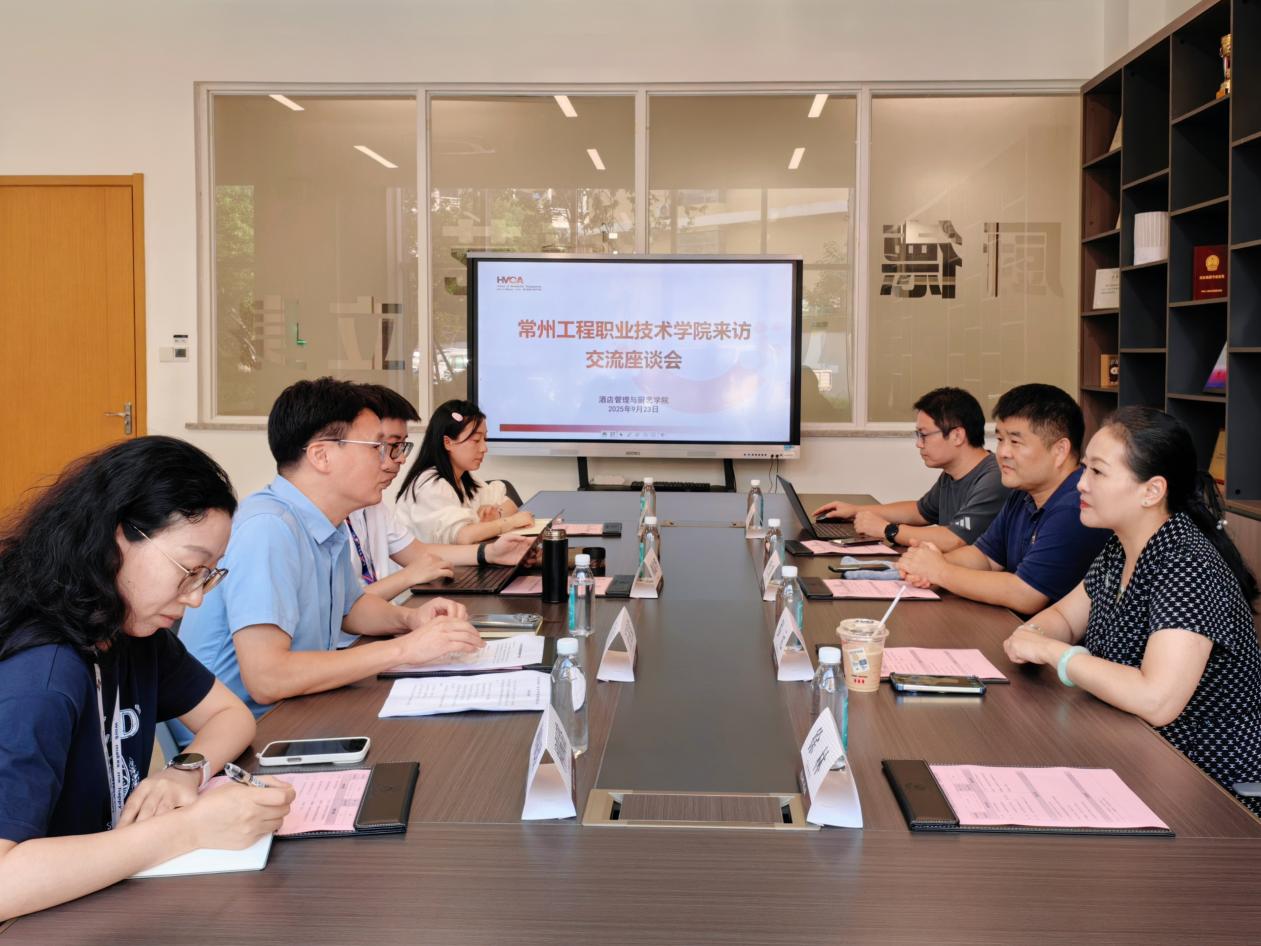 为深入推进产教融合,学习借鉴高水平产业学院建设经验,9月23日,常州工程职业技术学院经济管理学院院长李仁璞、副院长、酒店管理专业带头人、党支部书记罗元、综合办主任张明、产教融合办主任徐林一行4人赴浙江旅游职业学院酒店管理与厨艺学院开展专题调研,重点围绕酒店数字化产业学院的建设路径、运行机制与育人成效、产教融合等方面进行深入交流。