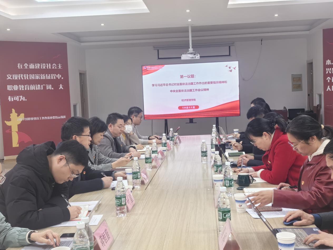 为深入系统学习习近平法治思想的核心要义和深刻内涵,推进学院治理体系和治理能力现代化建设,以高水平法治护航学院高质量发展,12月11日下午,经管学院在合一楼C303组织召开党总支理论学习中心组集体会议。党总支委员、班子成员、两办主任、教研室主任、支部书记参加了本次学习,学习会由党总支书记徐标主持。学校党委委员、副校长张雪华带领校巡学旁听组成员对本次理论学习中心组学习进行全程旁听。
