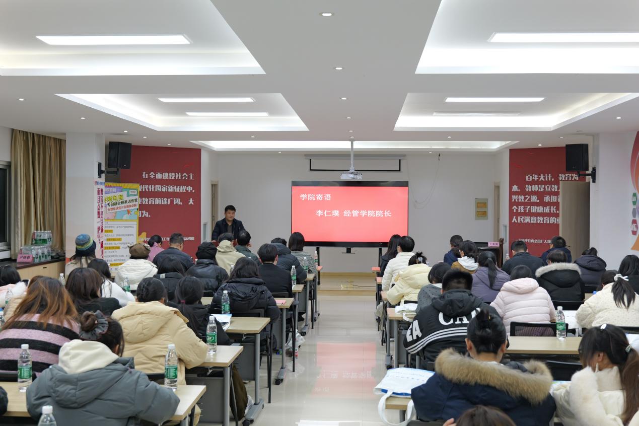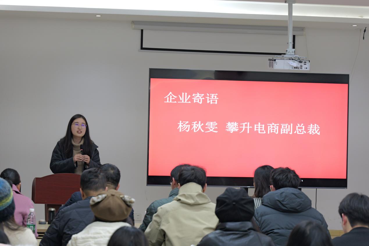 12 月 12 日晚,“跨境电子商务师集训营” 开营仪式在经管学院合一楼 C301 隆重举行。校党委委员、副校长张雪华,创新创业学院院长仇志海,经济管理学院院长李仁璞,攀升电商副总裁杨秋雯,各学院就业辅导员、经管学院相关教师及全体 47名参训学员共同见证这一重要时刻。开营仪式由经管学院副书记华亚主持。