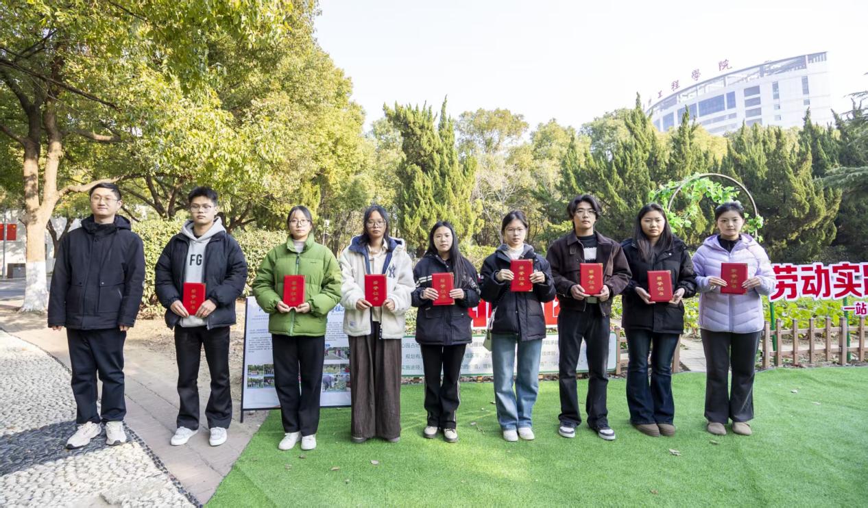 学工办主任叶星为在润心园日常耕耘中表现突出的同学,颁发“润心园优秀劳动实践之星”证书。