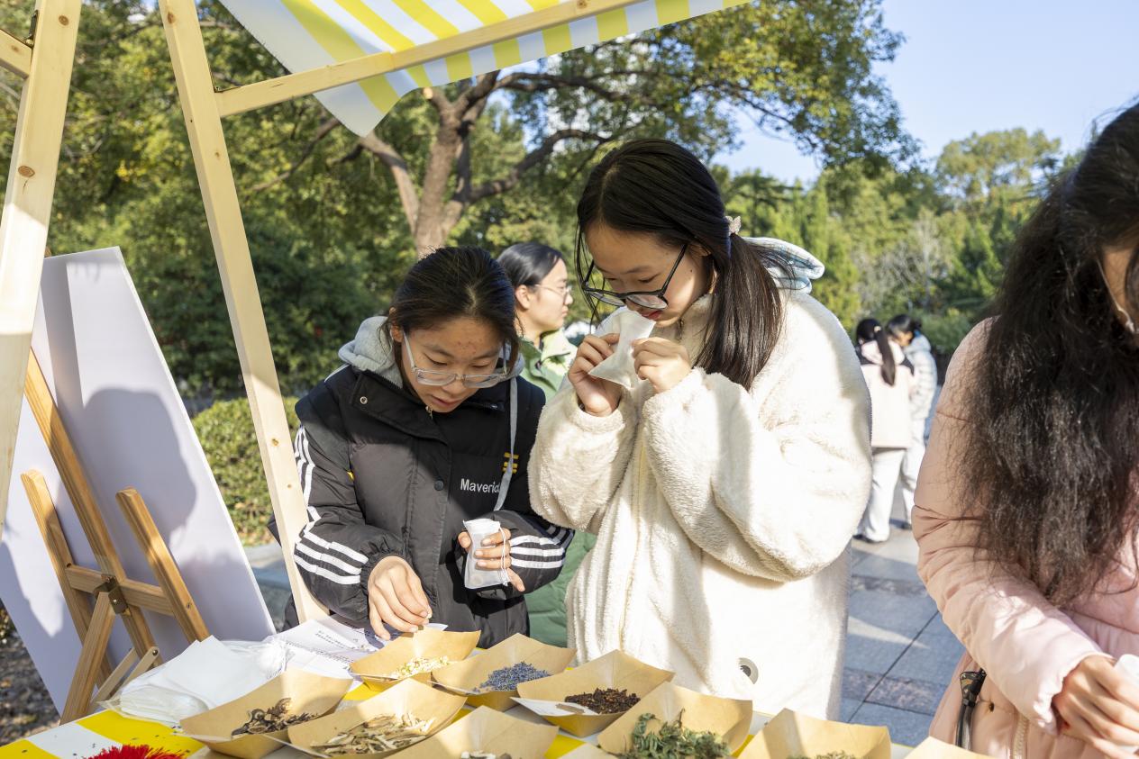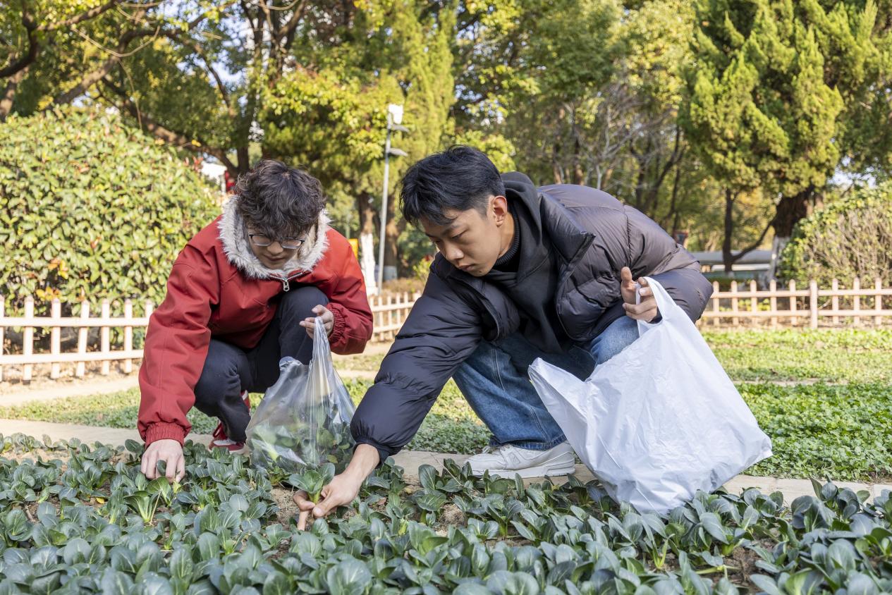 随后,同学们化身“丰收使者”,走进田畦间自由采摘蔬果,感受亲手收获的喜悦。采摘结束后,不少同学特意挑选出最为新鲜的蔬果,主动送到老师、保安大叔、宿管阿姨手中,用这份带着泥土清香的礼物,感谢他们日复一日的守护与陪伴,同学们的暖心举动也让劳动的意义更加厚重,让感恩的情怀在校园中传递。现场设置的“冬日拾趣・巧手创意市集”同样人气高涨,香包DIY工坊、拓印小坊、油纸伞彩绘、串趣小铺四个主题摊位前,同学们发挥创意、动手实践,将劳动的乐趣与艺术的美好融为一体,在互动中传递冬日温暖。